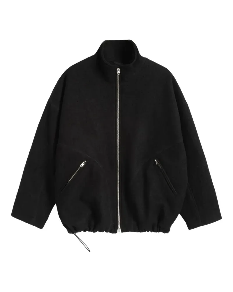 high-neck leather bomber jacket - Schwarz