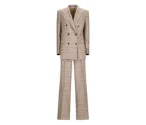 Der kleinkarierte, graue Blazer von Miu Miu auf dem Bild oben wirkt mit seinen gerafften Ärmeln feminin und die Kombination mit kurzen Culottes aus demselben Stoff ist äußerst elegant. Für punkige Untertöne sorgen die Styling-Partner: Knalliges Pink in einem von zwei (!) Hemden darunter, rockige Nieten an der Prada-Tasche und zuletzt die leuchtend blauen Haare geben dem eigentlich konservativen Anzug einen sehr coolen Look.
