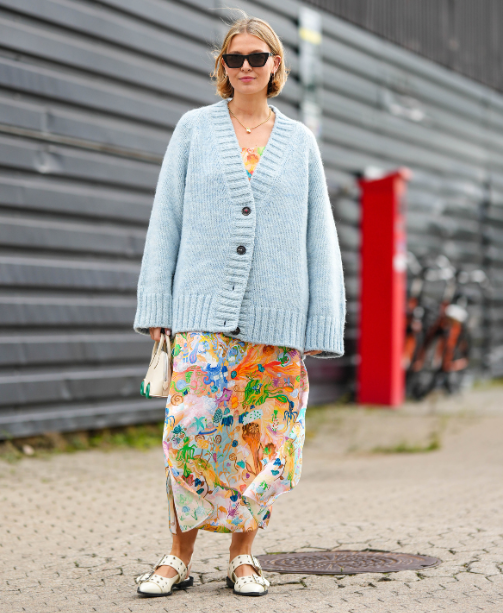 In der Übergangszeit spielen die richtigen Proportionen eine große Rolle. Besonders gut funktioniert hier ein lockerer, übergroßer Cardigan. Er lässt sich unkompliziert über ein langes Kleid tragen und sorgt für einen lässig-eleganten Look. Wer modisch etwas wagen möchte, kombiniert grobe Strickstrukturen mit floralen oder gemusterten Kleidern.