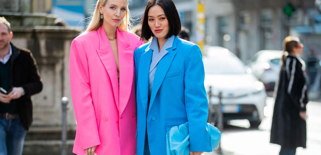 Besonders gern gesehen ist diese Saison ein Head-To-Toe-Look in monochromen Farben - dabei bleibt es entweder in natürlich-neutralen Farben oder es wird bunt und schrill - Neonpink, -grün und -blau sind vor allem für trittsichere Modefans aufregende Alternativen. Wer es sportlich-lässig bevorzugt, kombiniert den Anzug aus Oversize-Blazer und weiter Hose mit schlichten, weißen Sneakern und dezentem Goldschmuck. Etwas eleganter wird der Look, wenn man den Blazer mit einer eher schmal geschnittenen Hose und Heels stylt. Eine weitere Möglichkeit ist es, die Hose ganz wegzulassen und den Blazer in Übergröße als Blazerkleid oder als Jacke zu einem Mini-Dress zu tragen. Hierzu schauen streng nach hinten gebundene Haare, Creolen und Overknee-Boots besonders modern aus.