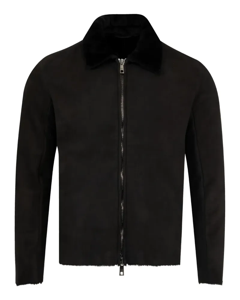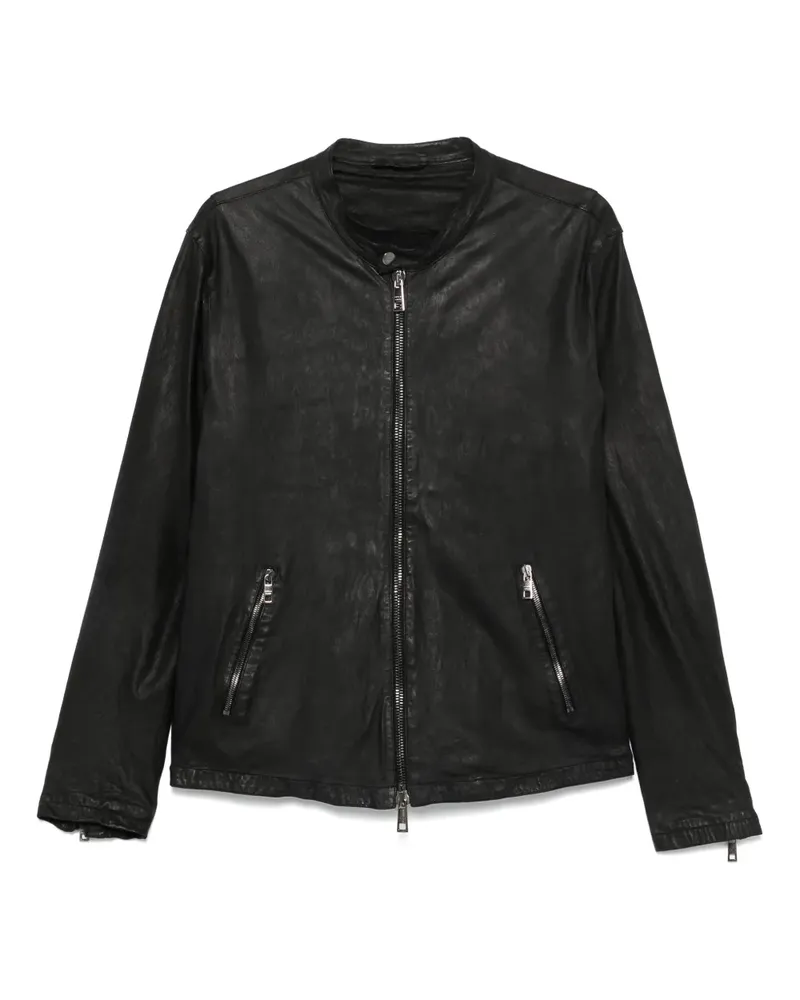 zip-up leather jacket - Schwarz