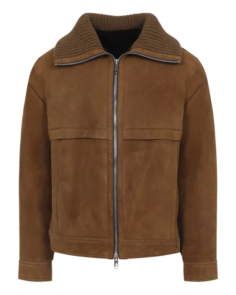 Wildlederjacke mit gestricktem Kragen - Braun