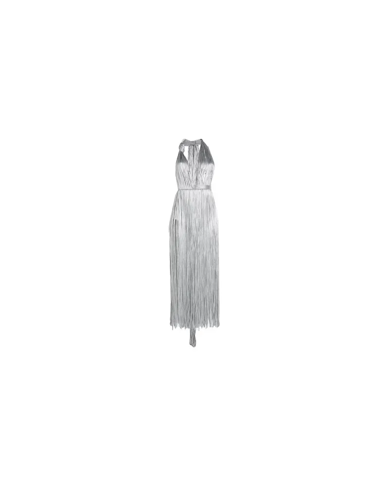 Maxikleid aus Häkelstrick mit Pailletten Multicolor