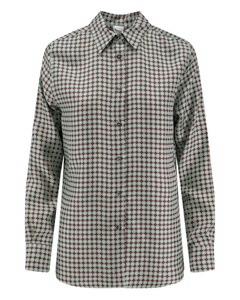 Geometrisch gemustertes Seidenhemd - Grün