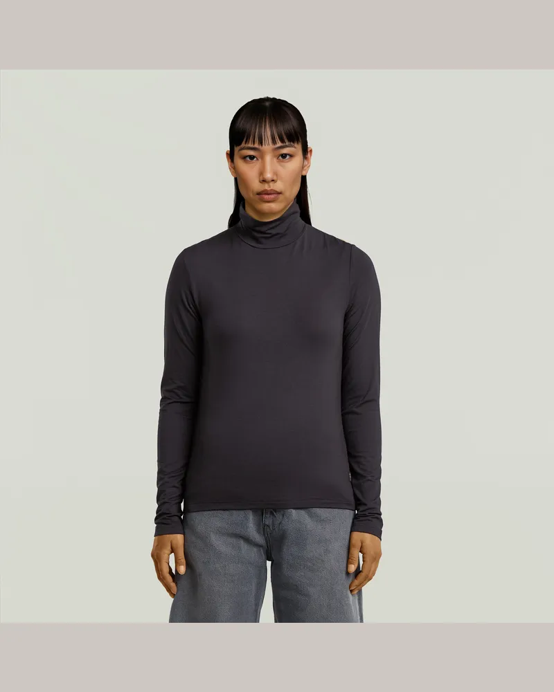 A-Line Slim Mock T-Shirt - Schwarz - Damen