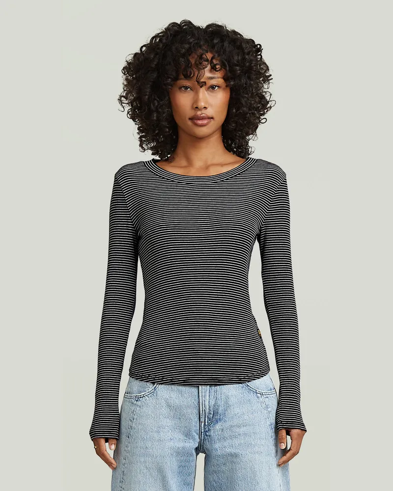 Striped Slim Mock T-Shirt - Mehrfarbig - Damen