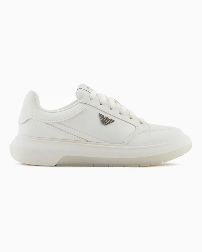 Sneaker aus Leder mit Fersenteil aus Gummi und profilierter Sohle Weiß