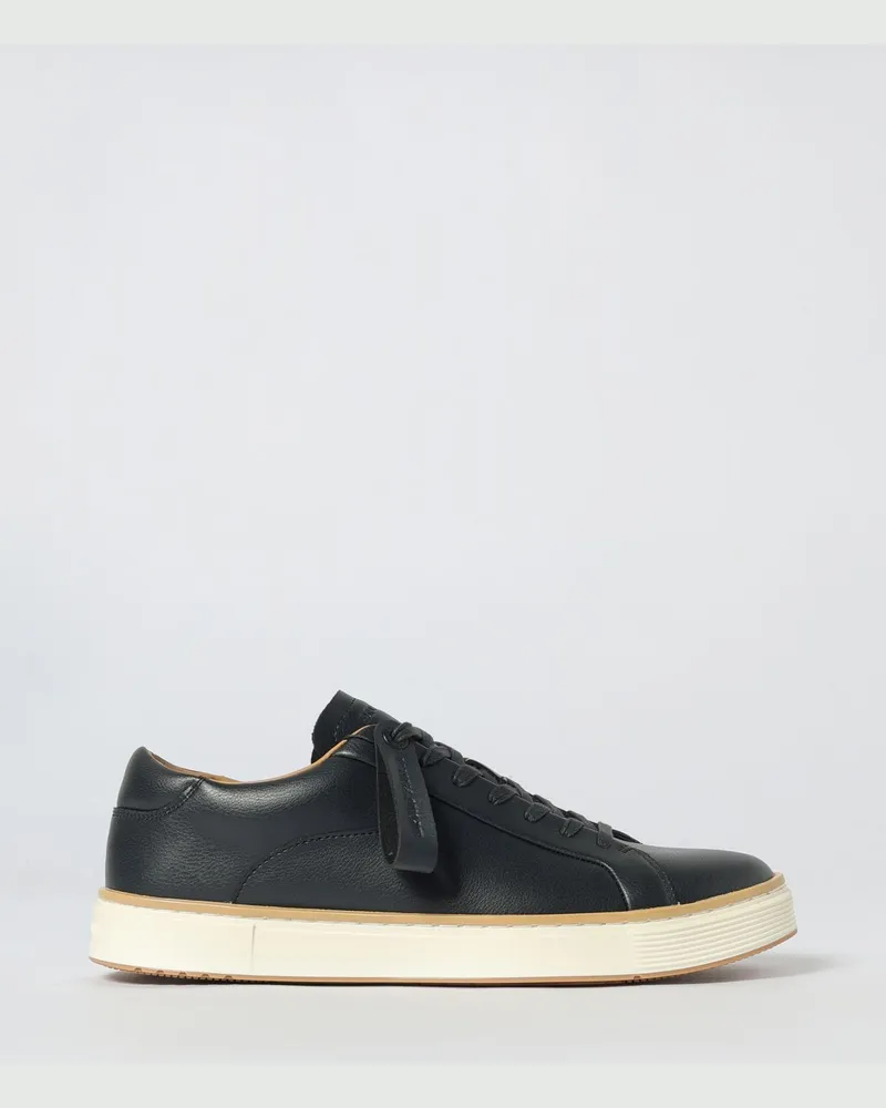 Sneaker aus Leder mit kontrastierender Einfassung Marineblau