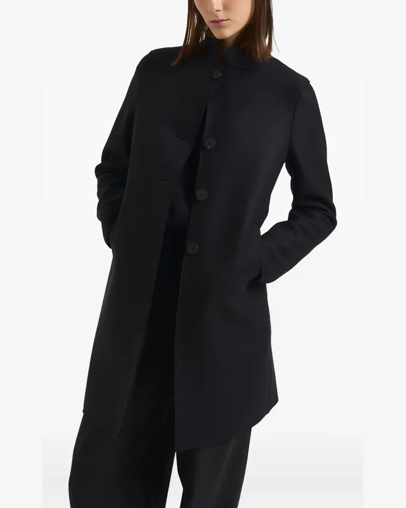 Einreihiger Mantel mit Klappentasche - Schwarz