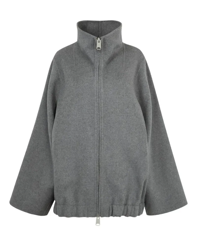 The Garret Jacket by Khaite is crafted from luxurious double-faced wool, soft yet structured, primarily composed of recycled wool. The design features a stand collar, decisive lines, and wide sculptural sleeves enhanced by the double-faced construction. Strategic darts replace traditional neck seaming, while a two-way zipper and elasticated blouson hem complete the piece, offering warmth, lightweight comfort, and a contemporary silhouette size: S, XS