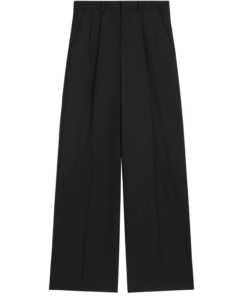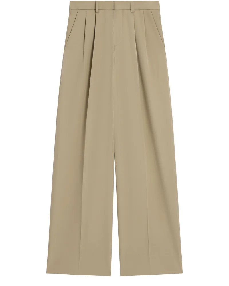 Asymmetrische Bundfaltenhose Mit Weitem Bein Aus Wolle - Neutral