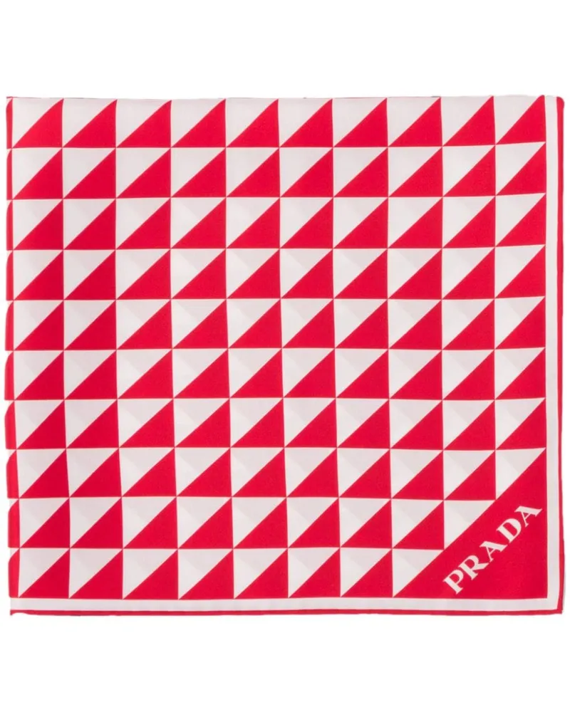 Schal Aus Bedruckter Wolle Und Seide, Damen, Rot