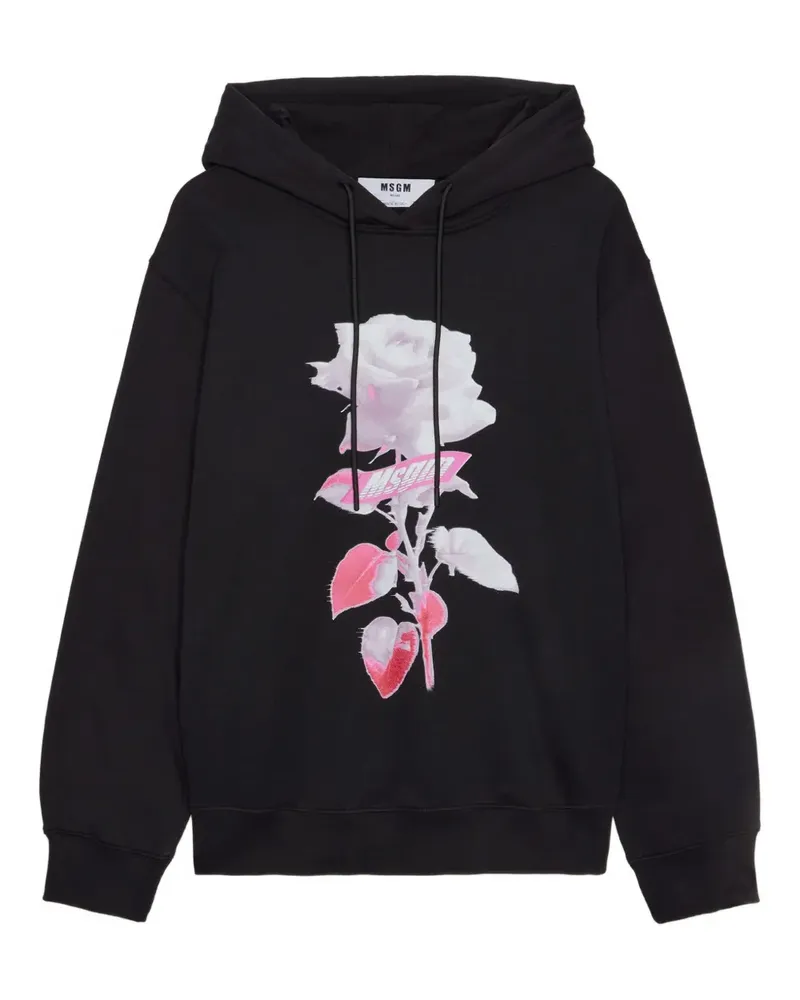 rose-print hoodie - Schwarz