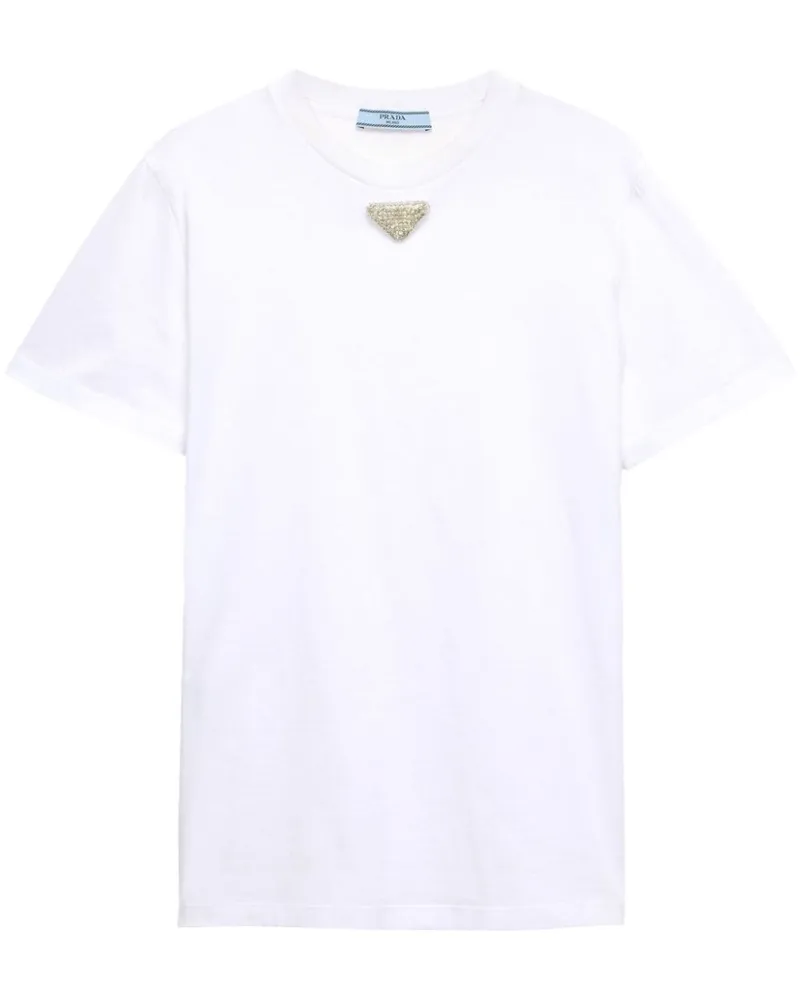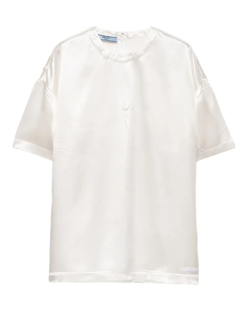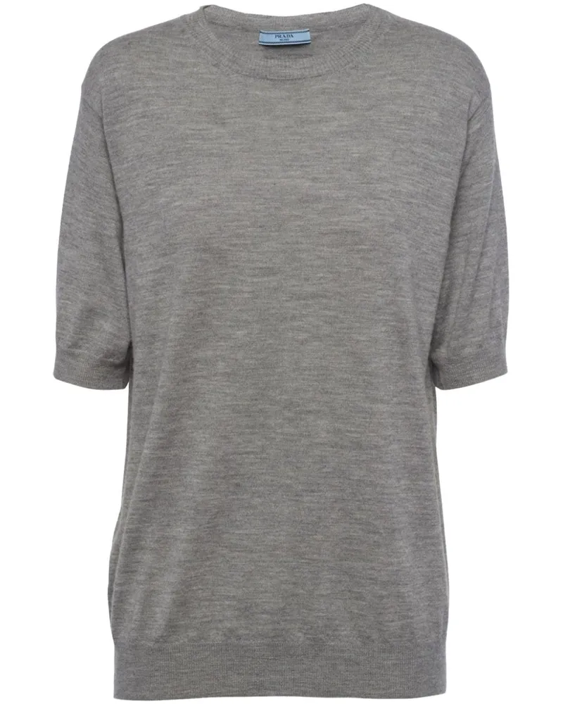 Rot U-Boot-Ausschnitt Logo-Stickerei an der Brust Cropped-Ärmel gerader Saum