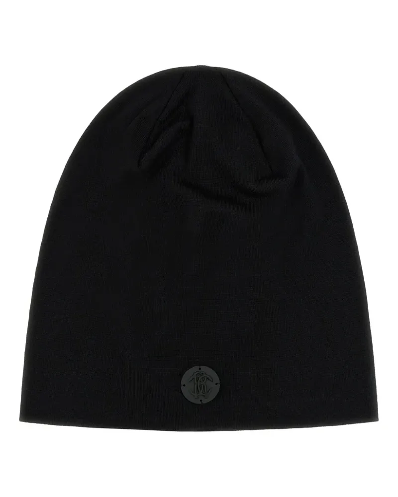Kilian Ski-Beanie aus Kaschmir in Rippstrick mit Logoapplikation und Streifen Schwarz