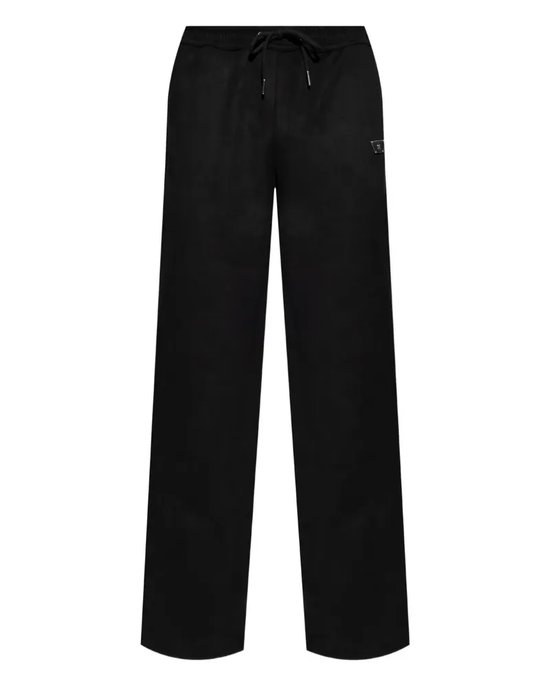 Gestrickte Hose Mit Weitem Bein Aus Wolle Mit Logostickerei - Schwarz
