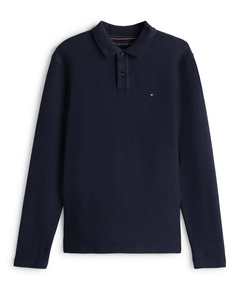 Langarm-Poloshirt aus Baumwoll-Piqué, Regular Fit in Marine
