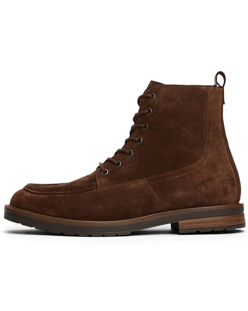 Gefütterte Boots aus genarbtem Leder mit seitlichem Reißverschluss in Braun