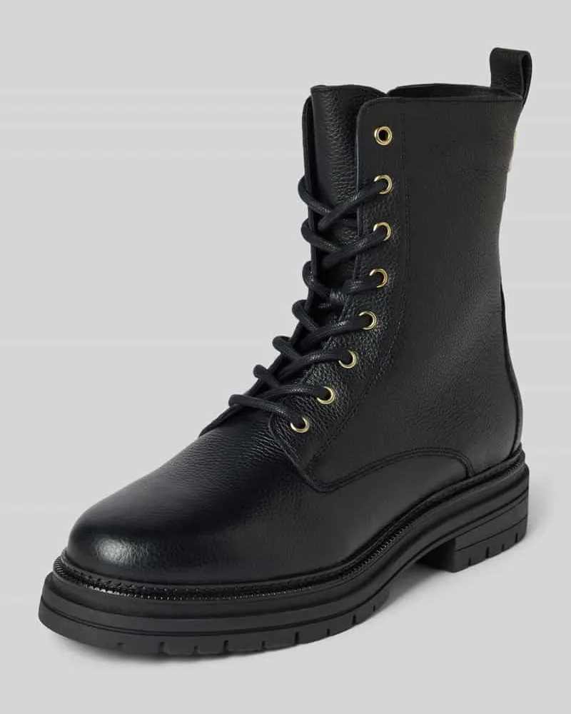 Schnürstiefel aus fein genarbtem Leder Black
