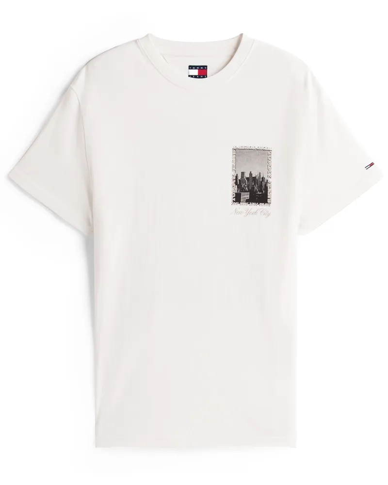 Unifarbener Hoodie mit Skyline-Print in Offwhite