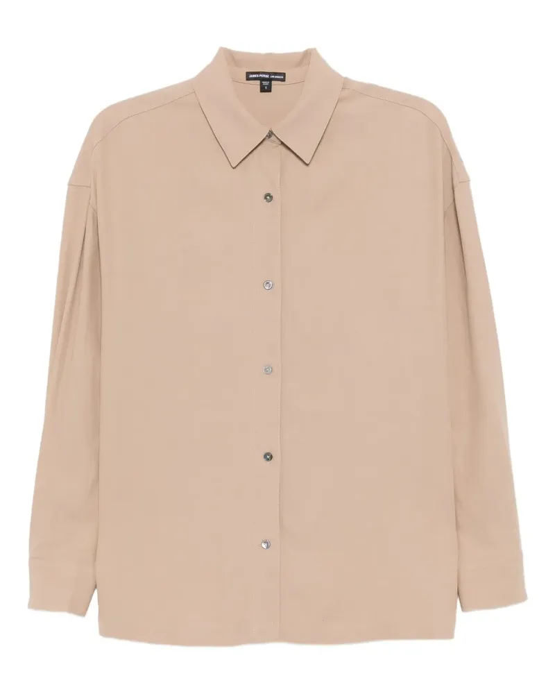 Beiger Granatapfel-Print, lange Ärmel, Knopf und geschwungener Saum