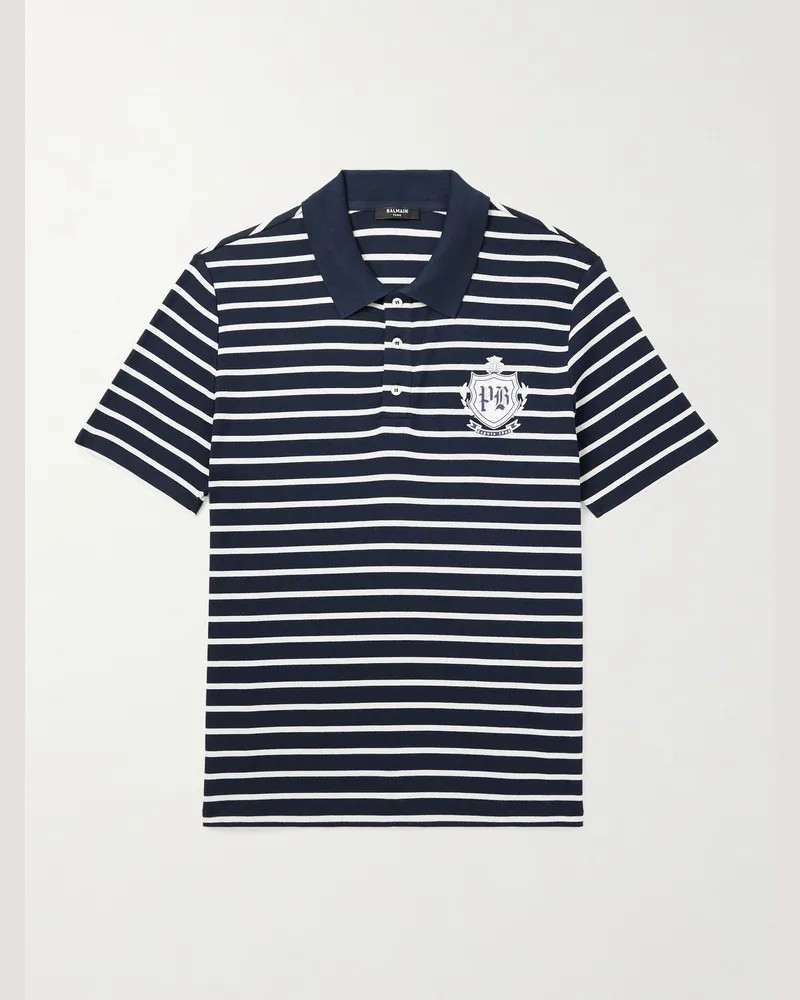 Mariniere gestreiftes Polohemd aus Baumwolle mit Logoprint Schwarz